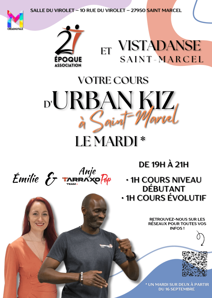 Un mardi sur deux Anje et Émilie dispensent 1h de cours débutant et 1h de cours évolutif de 19h à 21h à la Salle du Virolet à Saint-Marcel (27) au sein de l’association Vis Ta Danse !